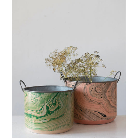 Metal Bucket with Handles and Marbled Pattern