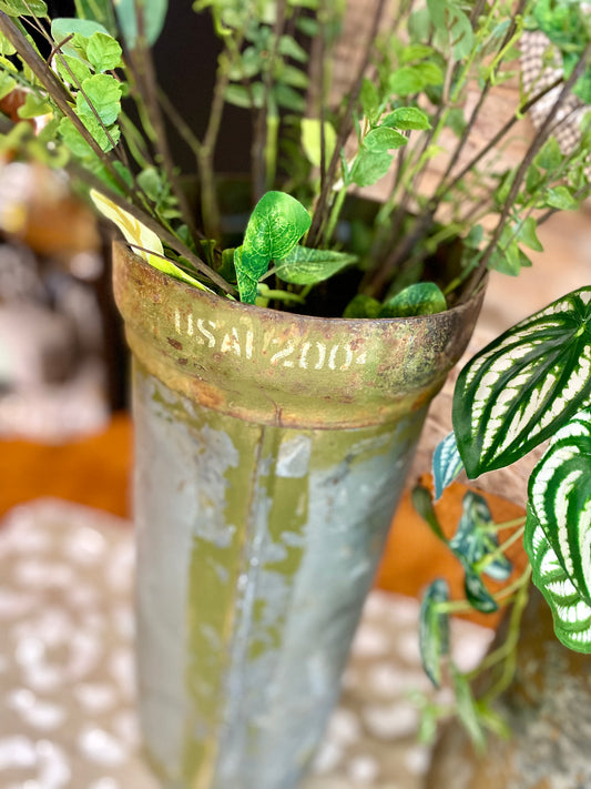 Repurposed Wooden Cowbell Planters/Iron Stand