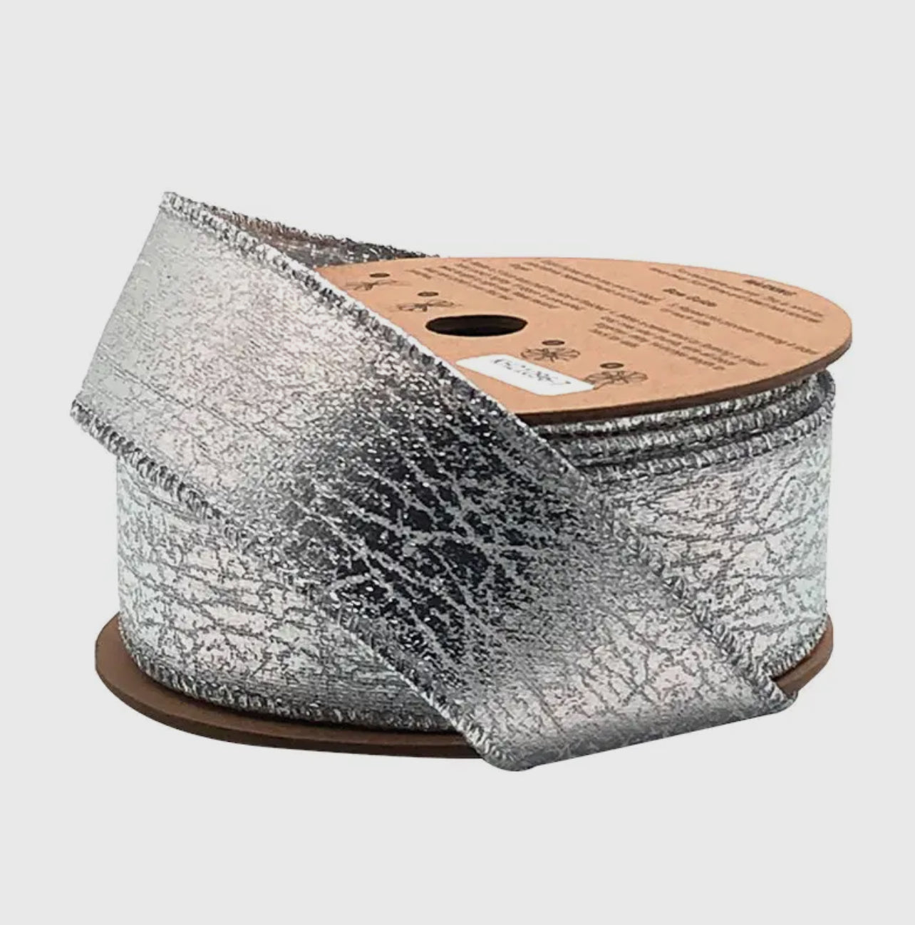 1.5" X 10 Yds Silver Faux Leather Wired Ribbon