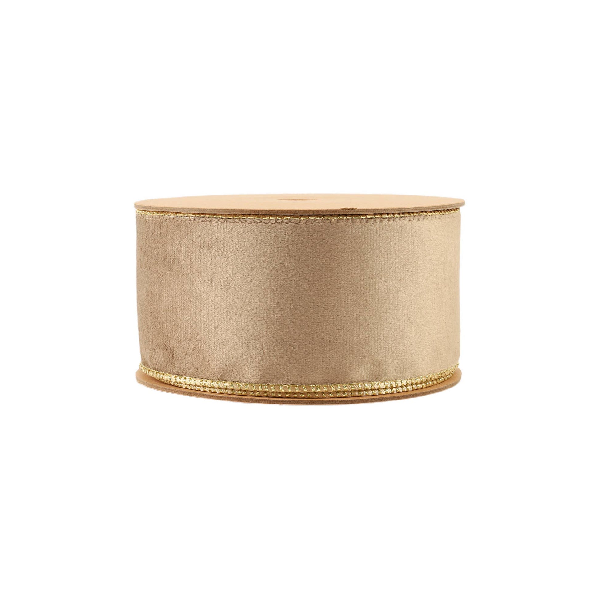 2 1/2" Reversible Classic Velvet Wired Ribbon | Latte/Gold | 10 Yard Roll