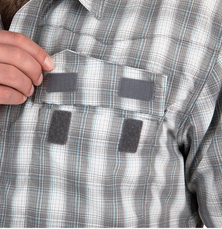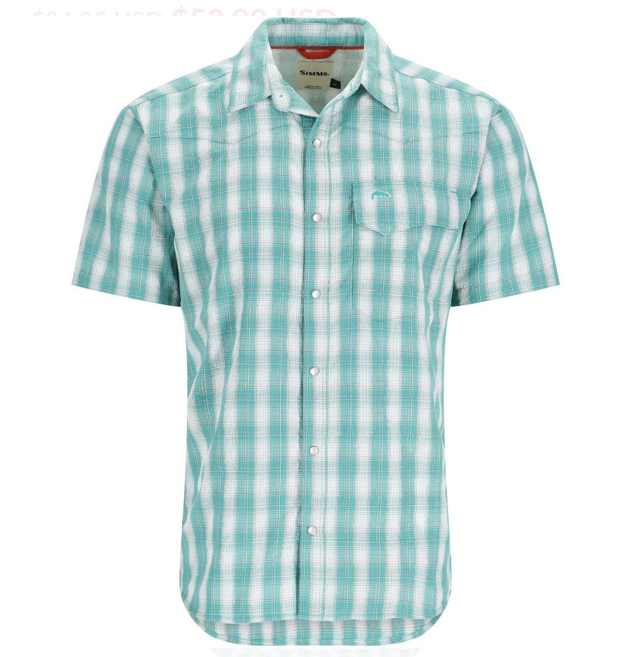 You don't have to be an old timer to have an appreciation for the classics. The Simms Big Sky Shirt - Short Sleeve is a western-styled, modern take on a classic look. New-fangled tech like plush wicking fabric, UPF 50+ sun protection, and a vented mesh-lined back panel ensure that this shirt is ready for the water or for a leisurely trip to the fly shop to chat about who's catching what, where. Size up for best fit.