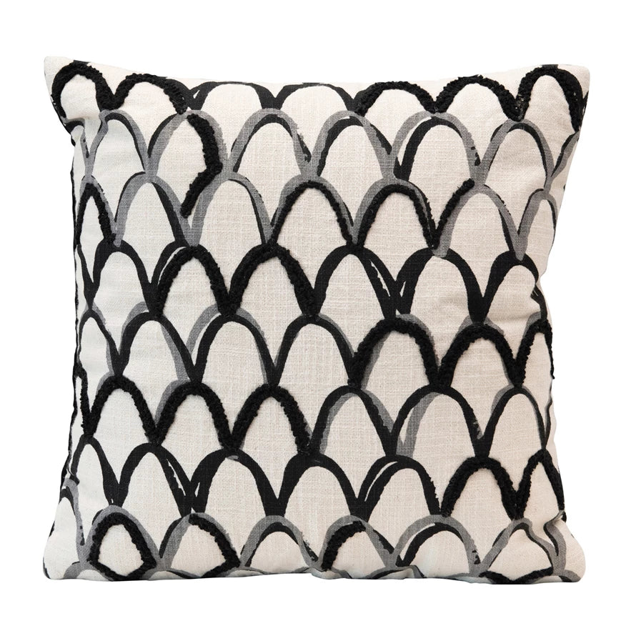 This 18" cotton pillow instantly upgrades any couch or chair, and catches the eye effortlessly with its bold black and white scallop pattern. Made out of cotton, this pillow brings both comfort and unique style to any seating.