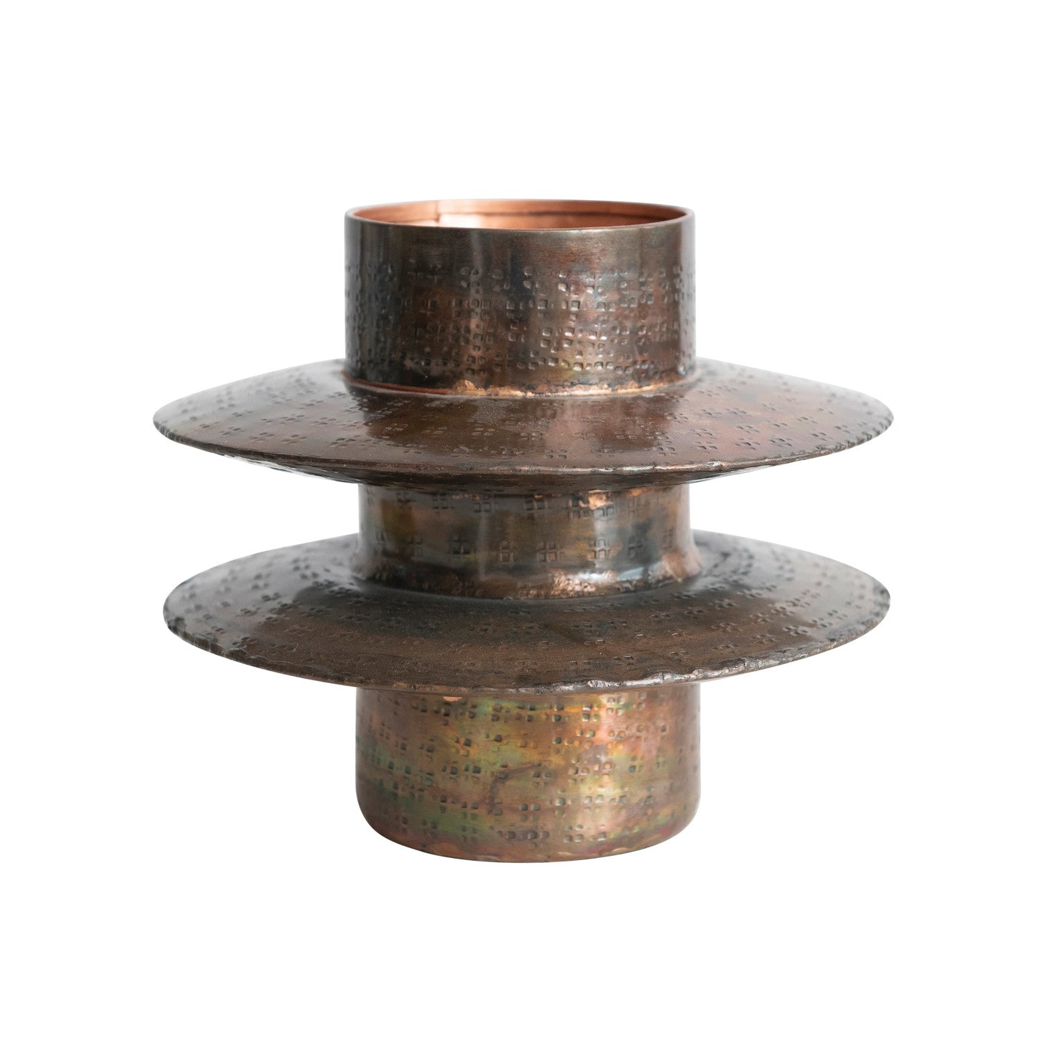Hammered Metal Vase, Antique Copper Finish