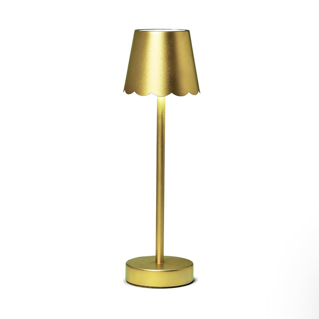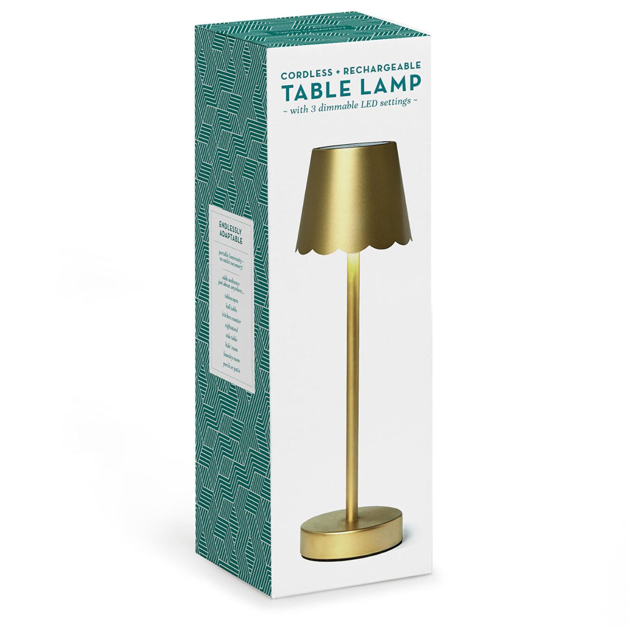 Create the perfect ambiance anywhere with this cordless, portable LED light. A touch button functionality makes it easy to switch between the three different light settings and dimmer function. Features a good metallic finish and scalloped edge shade. Customize further with our scalloped paper shades, available in a variety of prints.