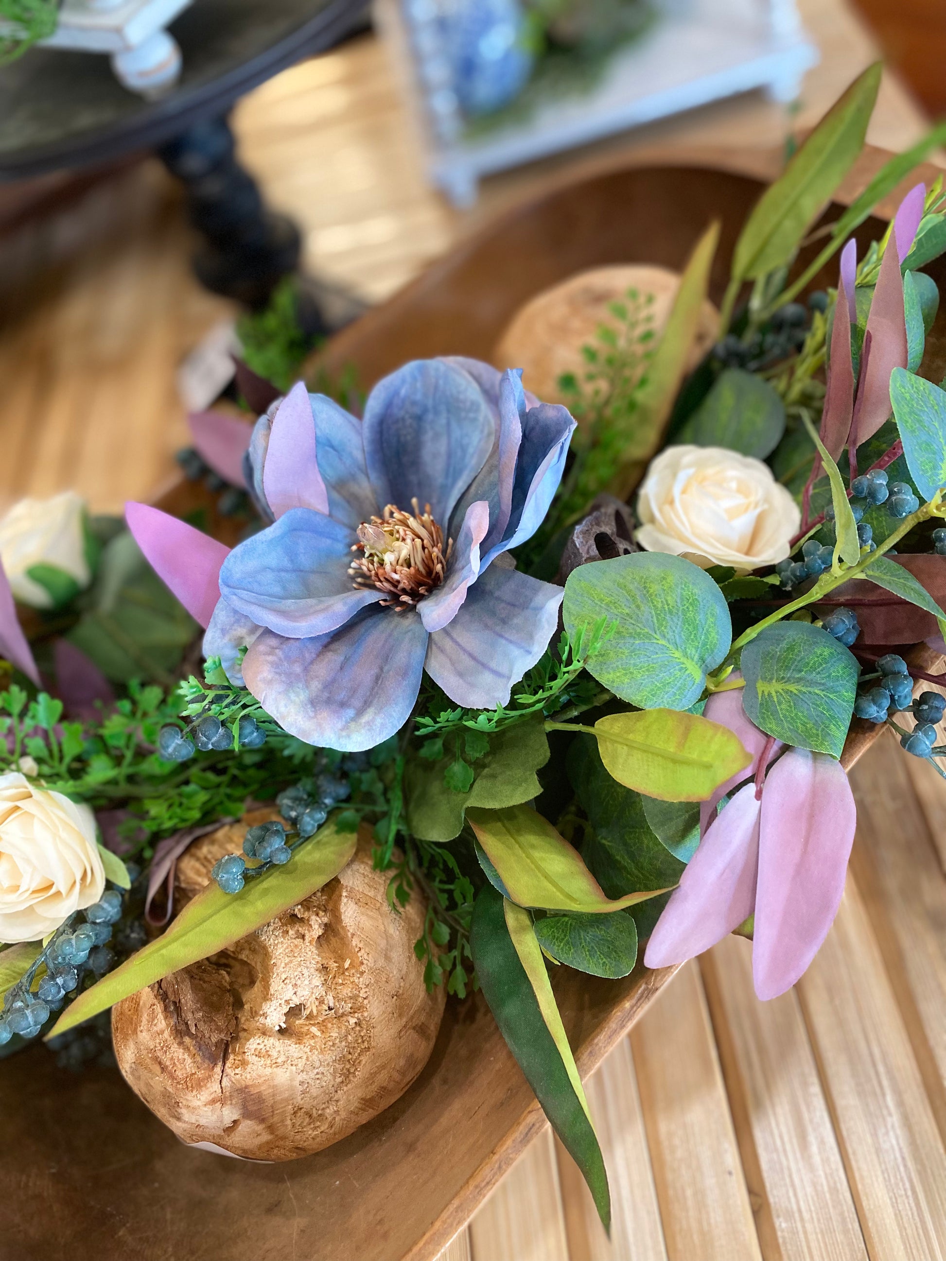 A beautiful swag for any area in your home! It’s a great addition for a tray or bowl. Use it alone above a window, on a door or as a centerpiece. Pair it with the Magnolia Days drop in to tie it all together. Shipping available