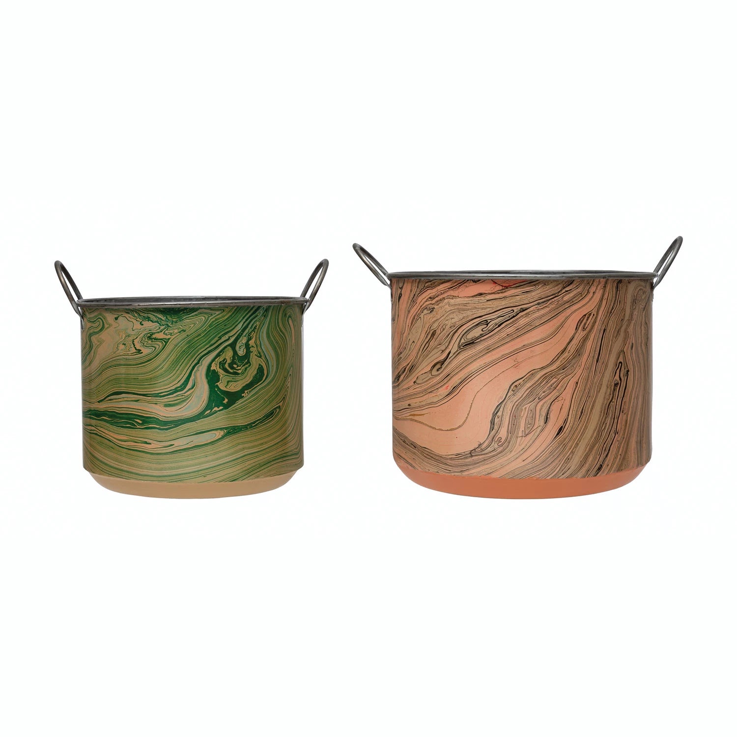 15" Round x 11-1/4"H & 12-1/2" Round x 10"H Metal Buckets w/ Handles & Marbled Pattern