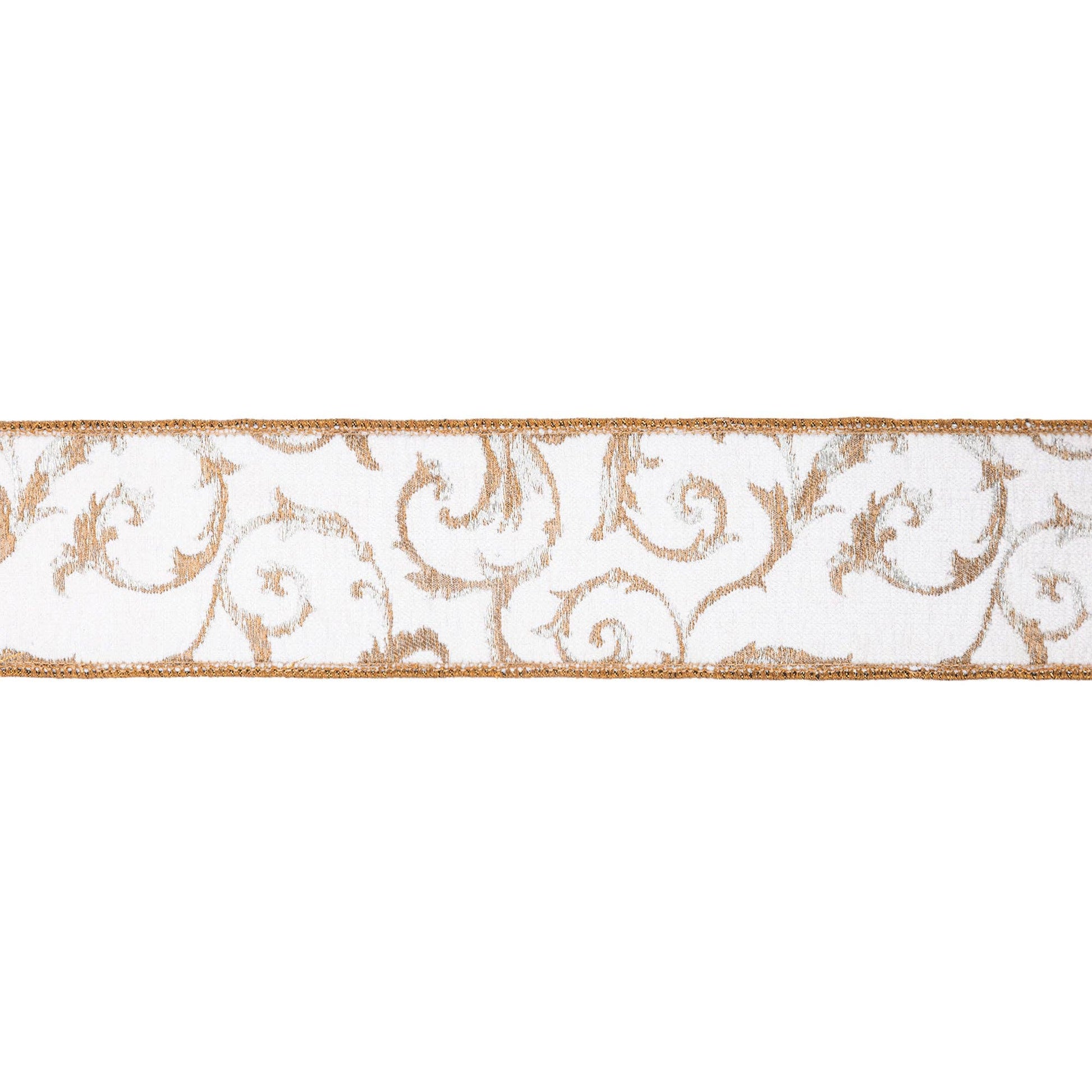 2 1/2" Metallic Scroll Jacquard Ribbon, Dupioni Backing 10yd
