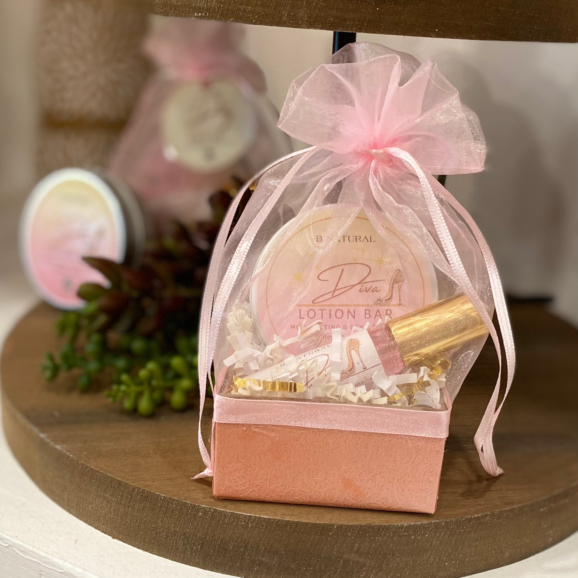 This darling gift set includes a lotion bar and mini perfume spritzer.