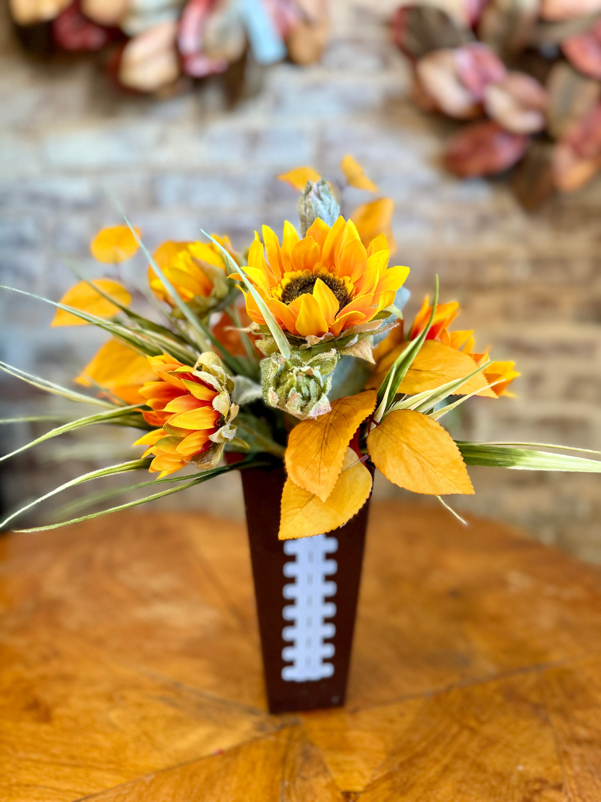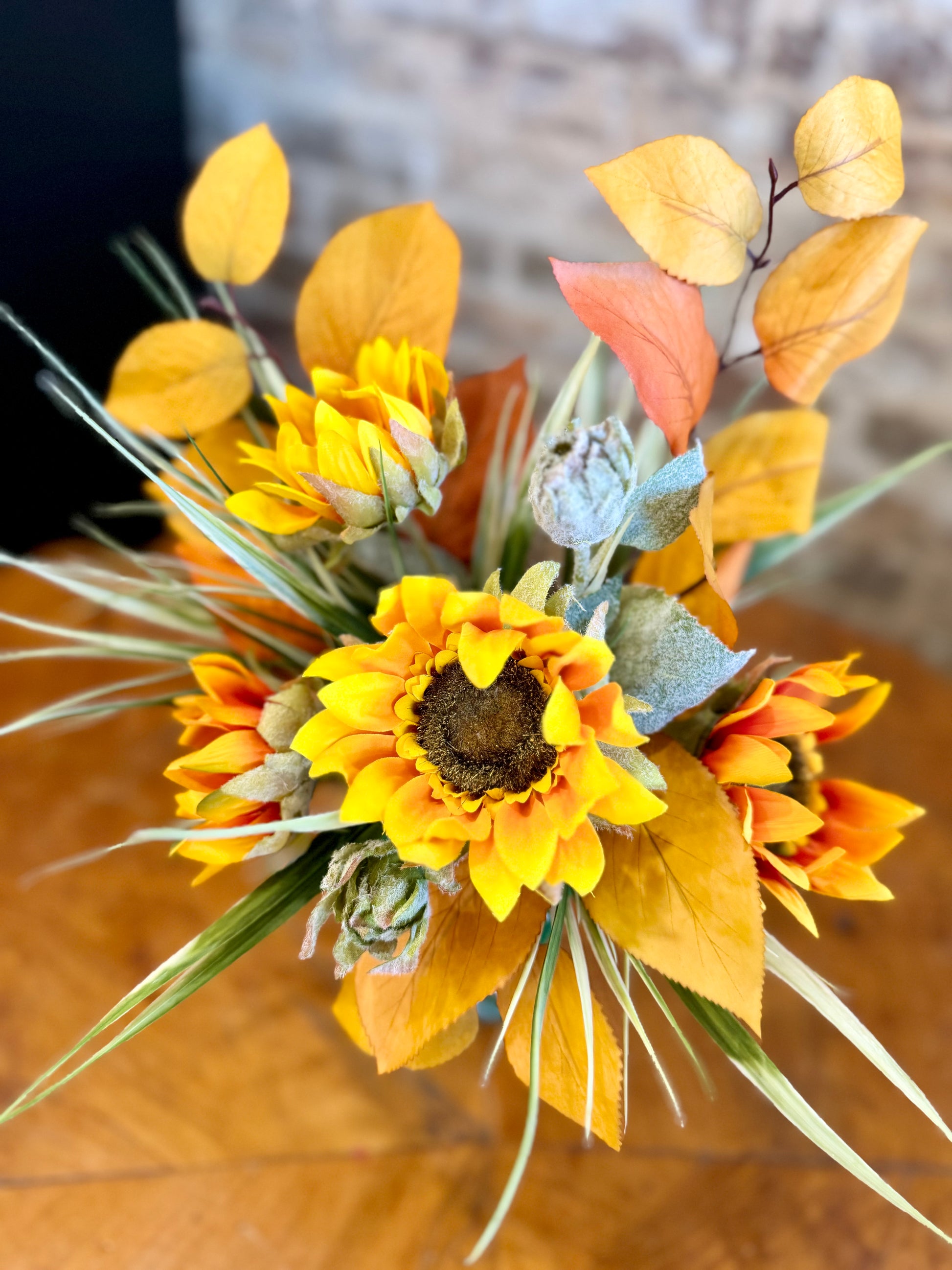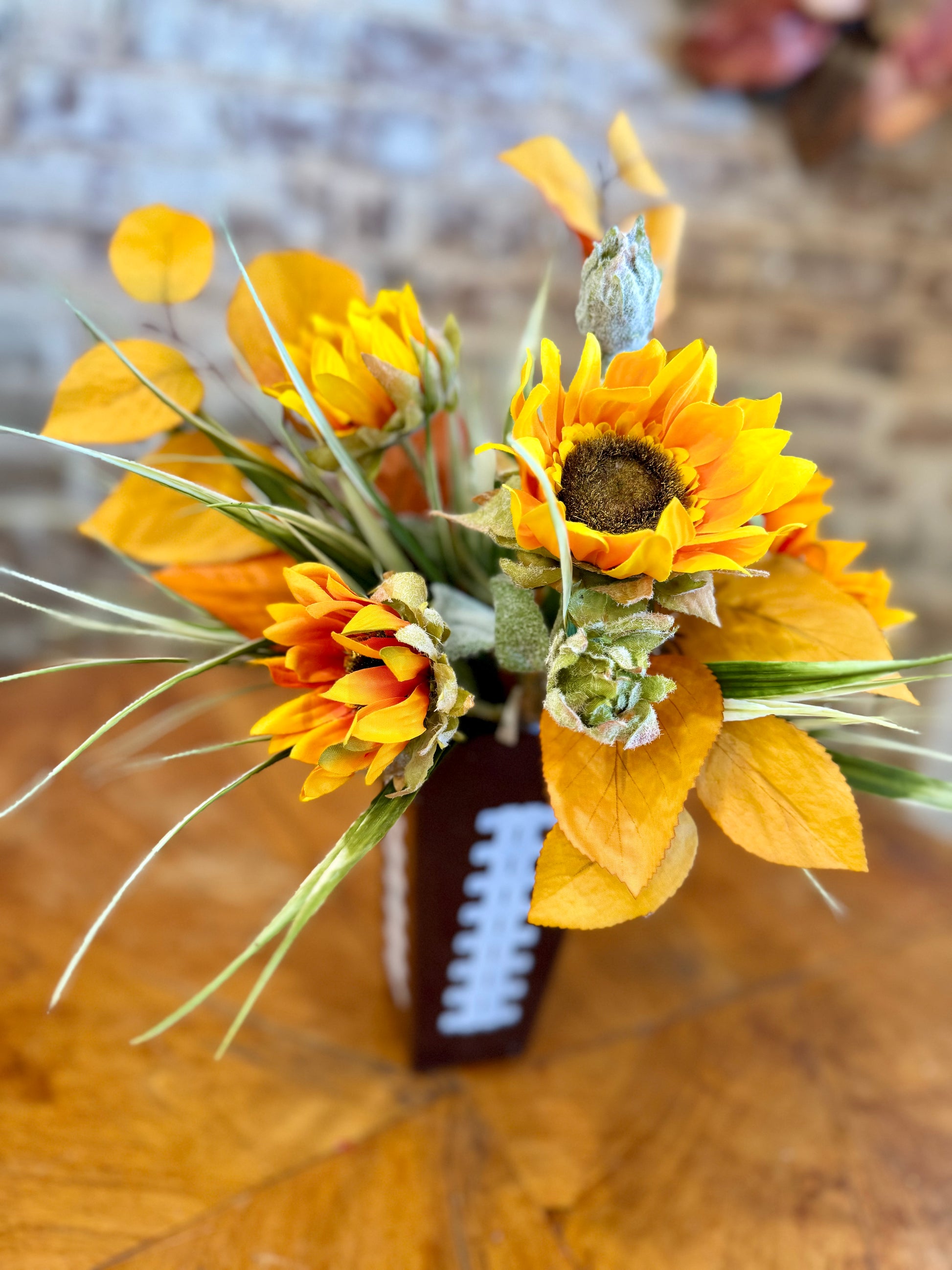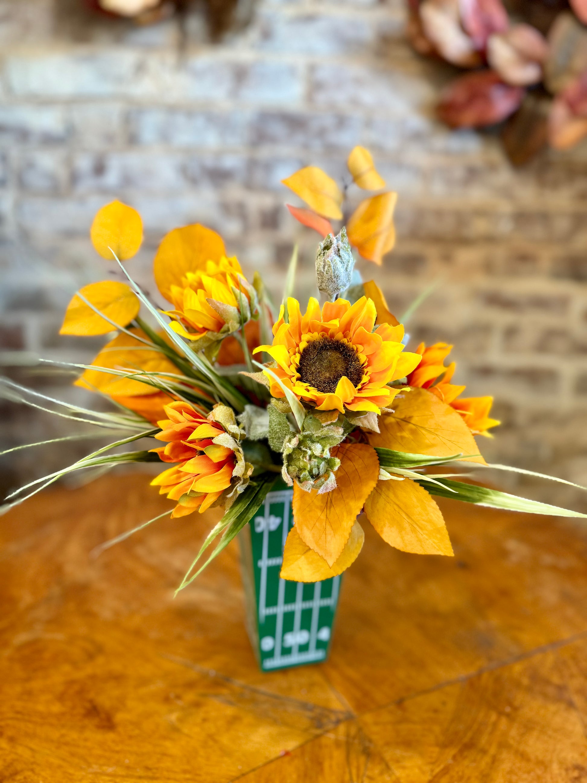 Yellow and Orange Sunflowers, Grass and fall leaves create this great custom drop in.