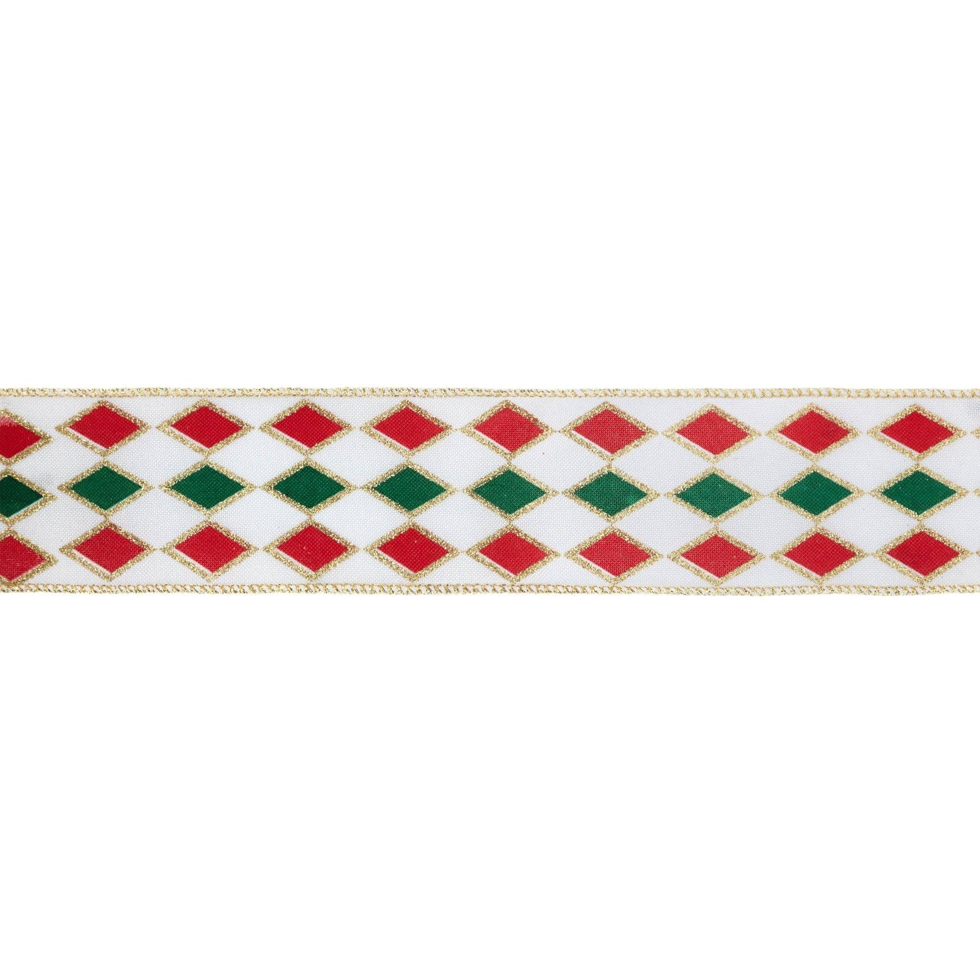Red and Green Diamond Glitter Wired Ribbon 10yd