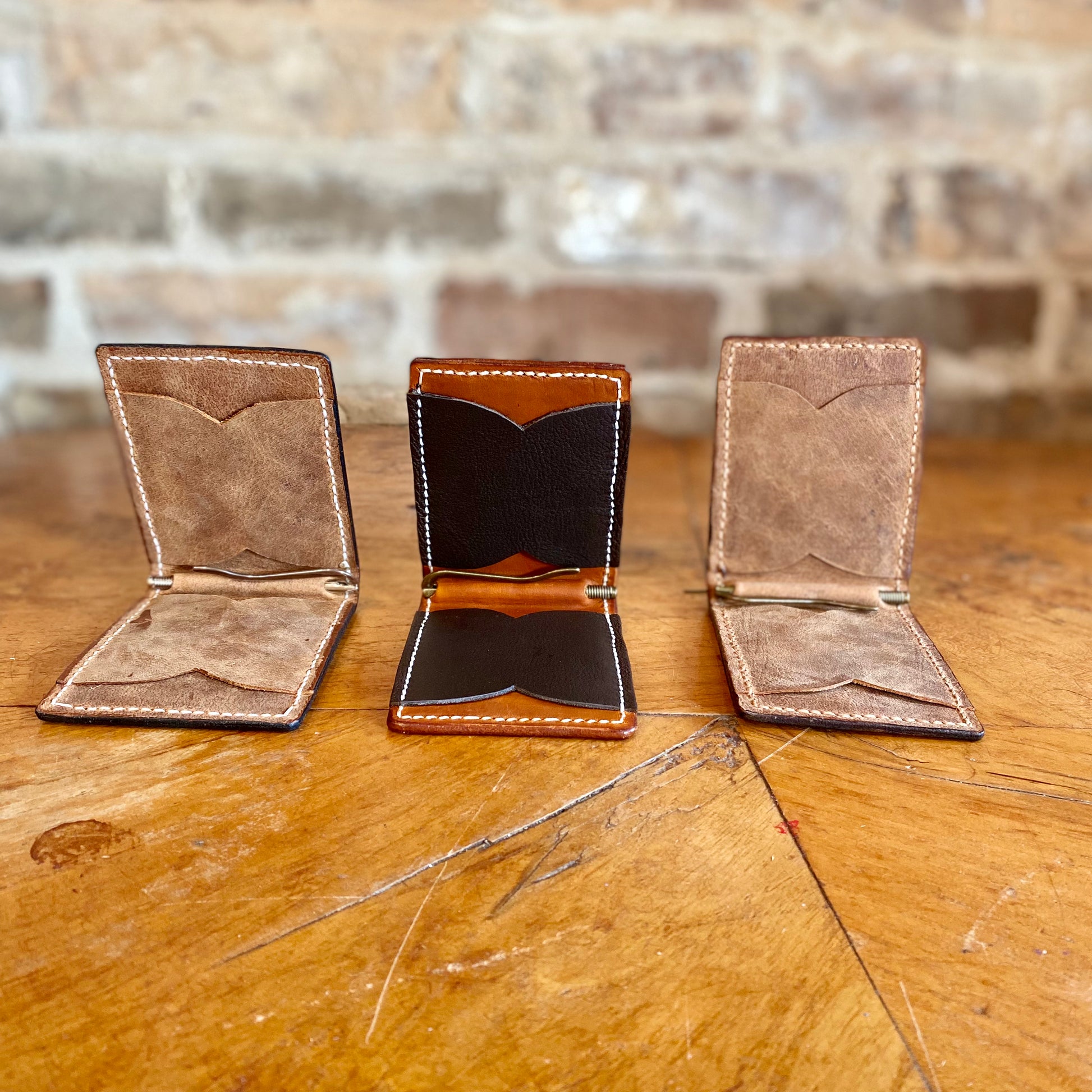 Choose from 3 great styles of these custom money clips. The inside has 2 card pockets and a metal clip to secure your bills. Handmade in Hattiesburg, MS.
