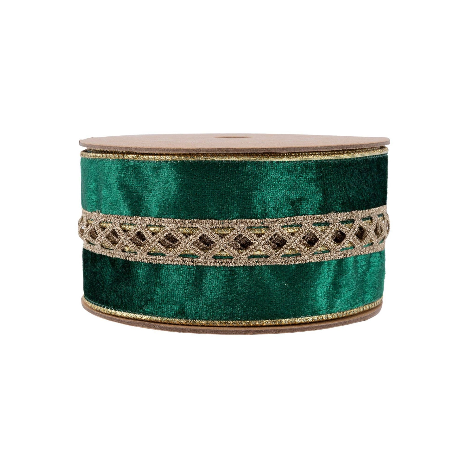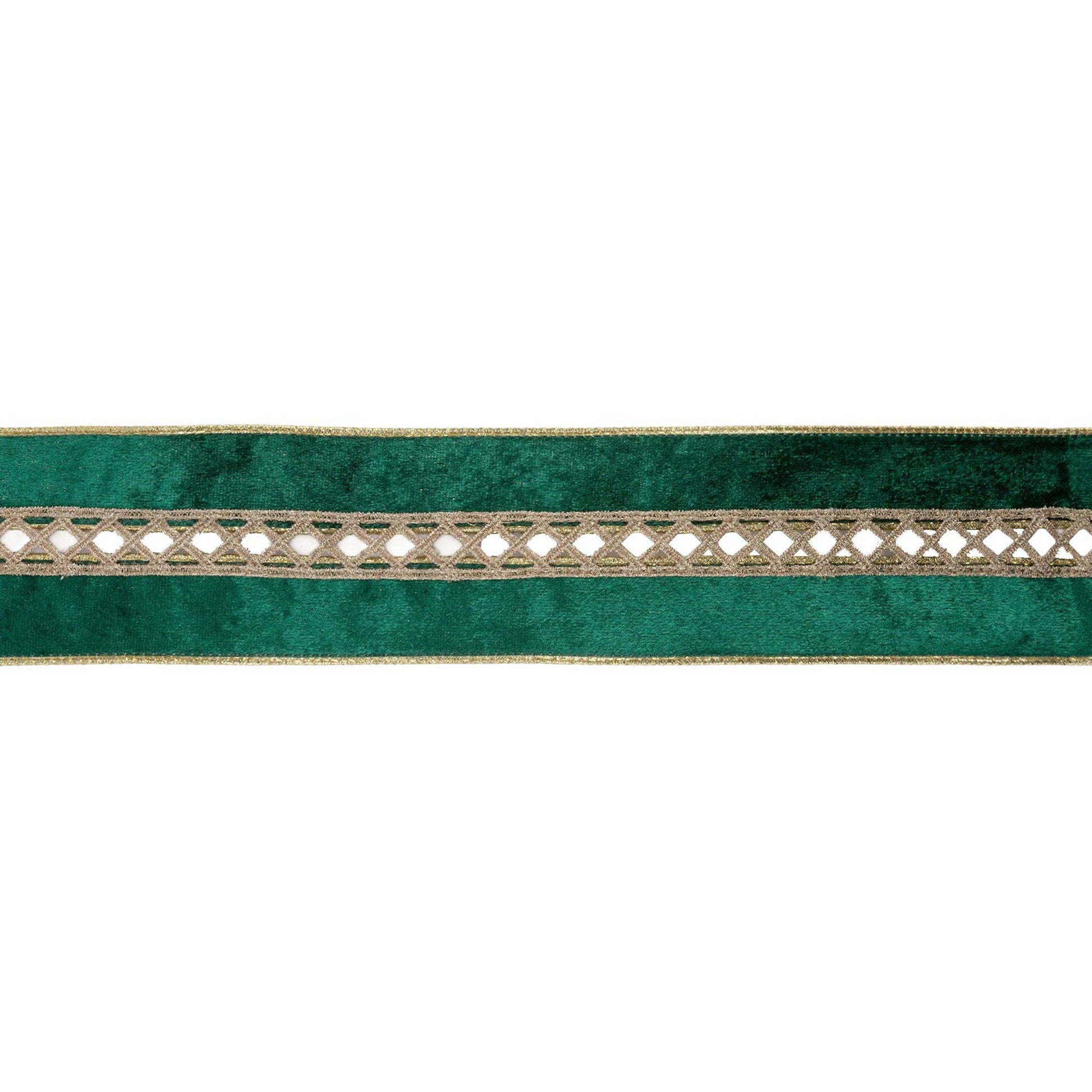 * 2 1/2" wired velvet ribbon featuring an elegant criss-cross jeweled design.